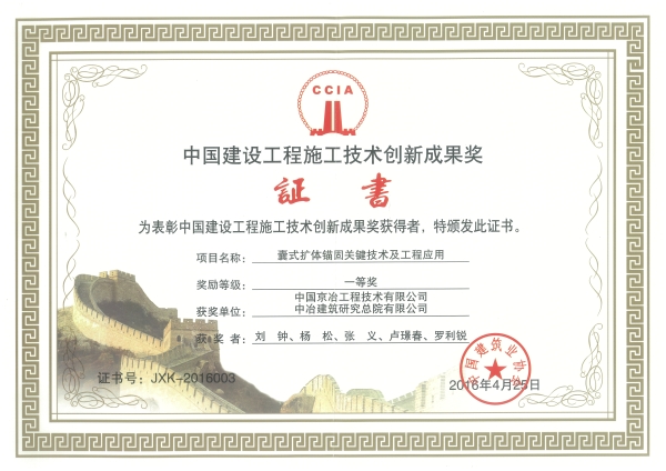 囊式扩体锚固关键技术及工程应用-2015年中国建设工程施工技术创新成果奖(横向)